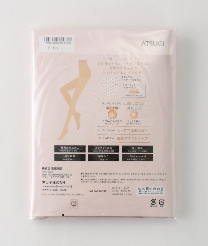 ・3足組個包装パンティストッキング。伝線しにくい。ヒップ立体編み設計。幅広ウエストテープ。静電気防止加工。エチケット消臭。吸汗加工。UV対策。補強トウ。バックマーク付。ハイゲージパンスト。