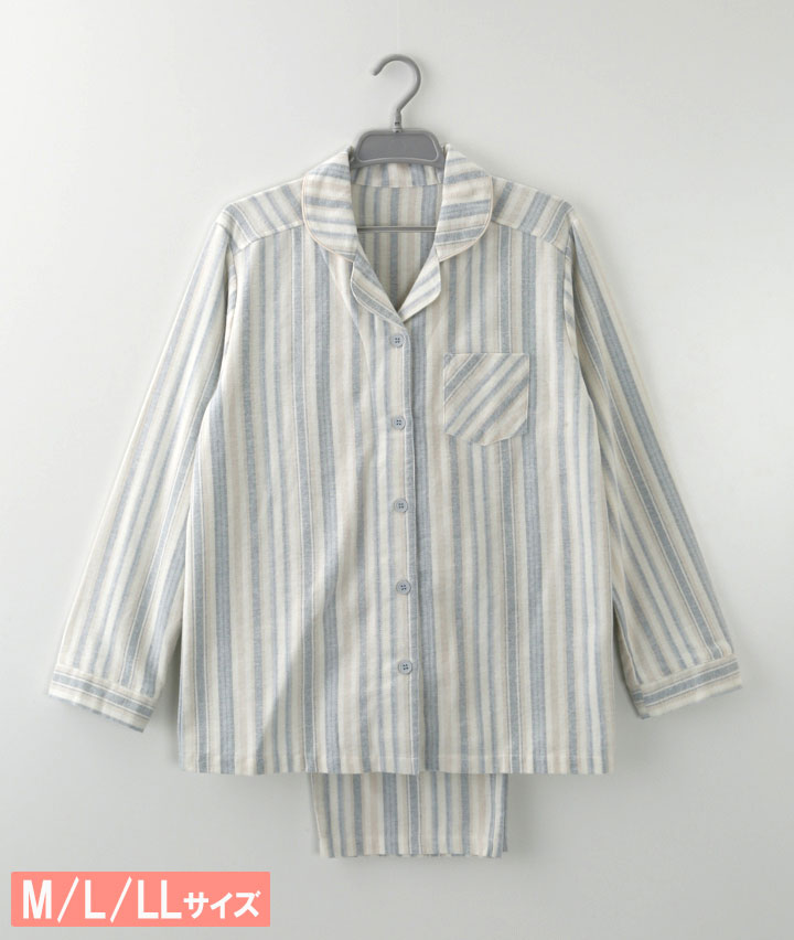 (こだわりパジャマ)(綿100%)マルチストライプ起毛シャツパジャマ