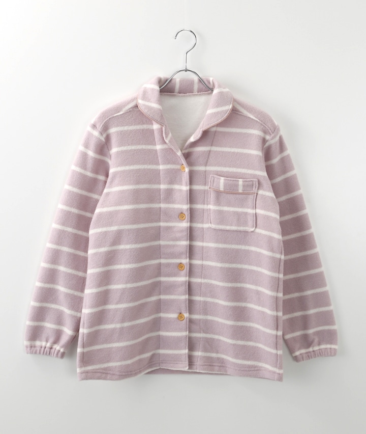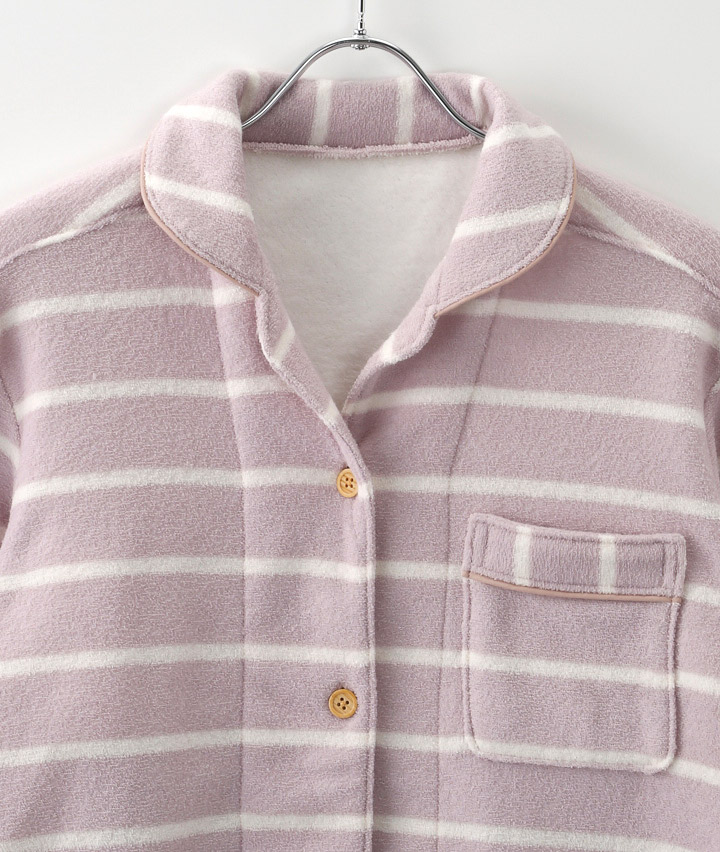 【11/05(水)10:00販売開始】【SUFFUSE】温活裏起毛ボーダー柄シャツパジャマ