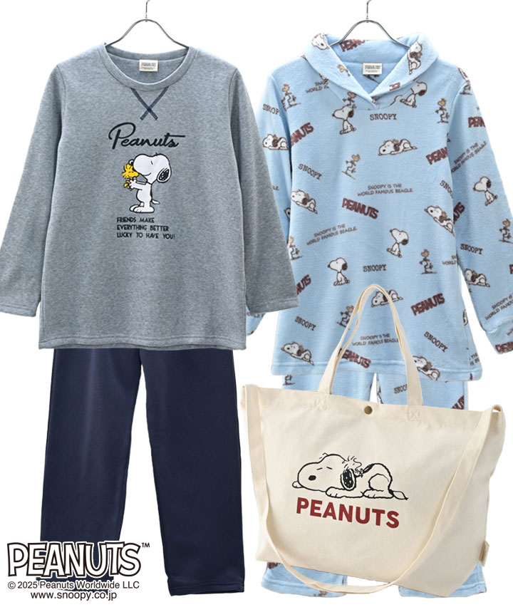 【12/24(水)10:00販売開始】【PEANUTS】婦人スヌーピー裏起毛ルームセット2枚組み
