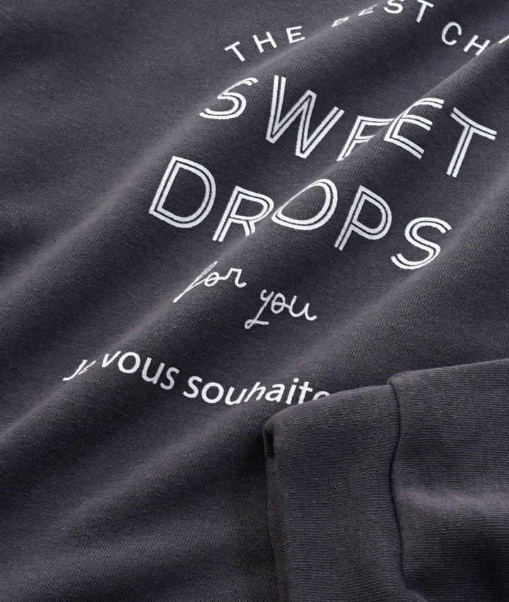 ・濃色の場合は、濡れた状態や強い摩擦により合成皮革や他のものに色移りする恐れがありますので、お取扱いには十分ご注意下さい。・プリント部分は、合成皮革のソファーやバッグに大変移り易い性質がございます。お取扱いには十分ご注意下さい。・濃色は他の物とのお洗濯はお避け下さい。・長時間の水への浸漬はお避け下さい。・洗濯後は速やかに形を整えて陰干しをして下さい。・プリント部分へのアイロンはお避け下さい。・生成・淡色には蛍光増白剤の入っていない洗剤をご使用下さい。・素材の特性上、ピリング(毛玉)の発生しやすい商品です。ピリングが出来てしまったら引っぱって取ろうとせず、小さなはさみまたは毛玉取り器などで取り除いてください。・タンブラー乾燥はしないで下さい。・洗濯ネットを使用して下さい。