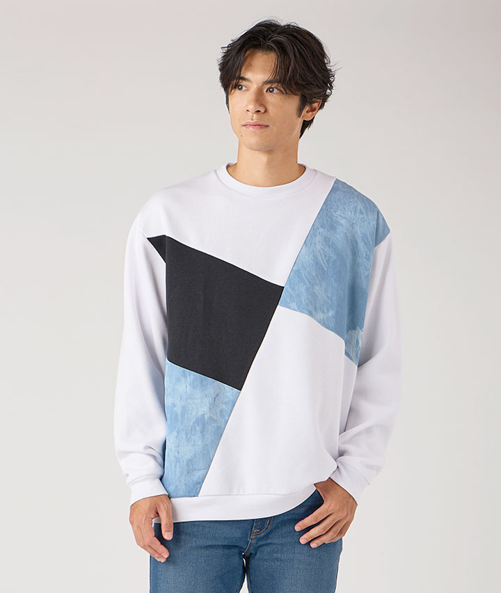 ・大人キレイ目に見えるブリーチデニムの布帛を異素材として切り替えた、スウェットシリーズです。