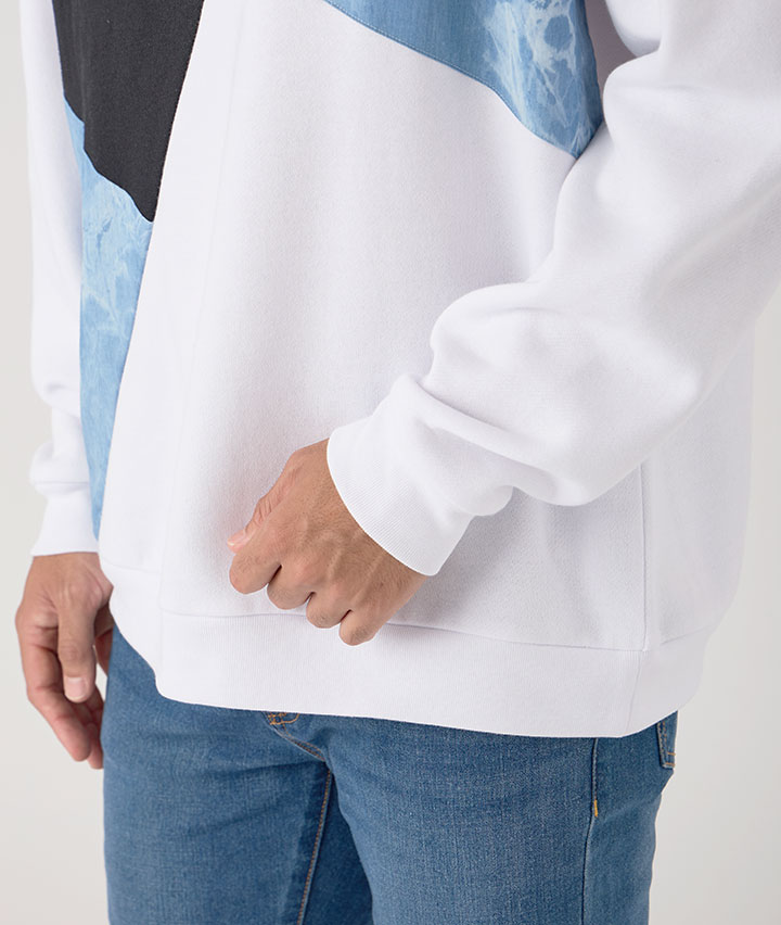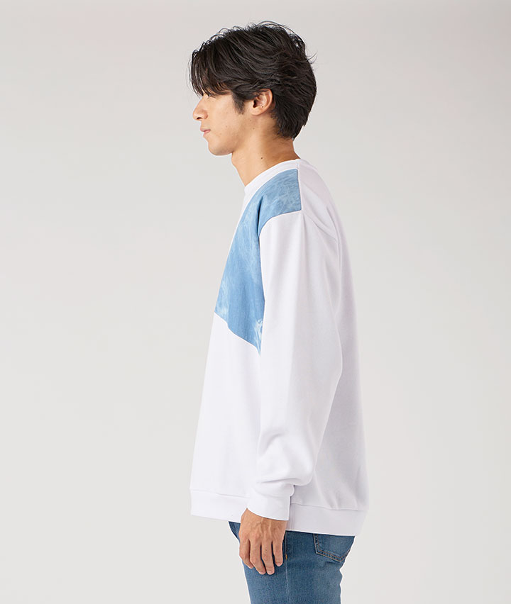 ・大人キレイ目に見えるブリーチデニムの布帛を異素材として切り替えた、スウェットシリーズです。
