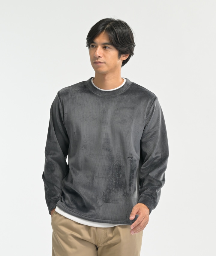 ・カットコーデュロイ素材を使用したカットソー。裏ベロア素材で暖か。