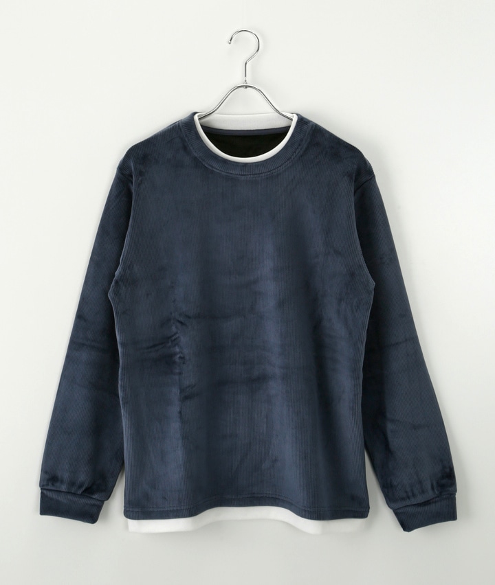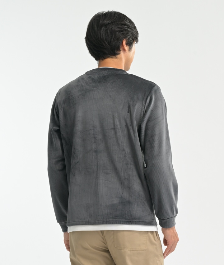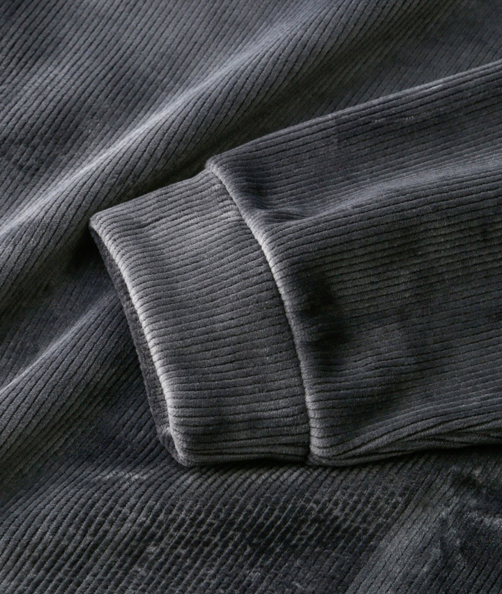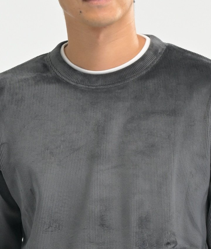 ・カットコーデュロイ素材を使用したカットソー。裏ベロア素材で暖か。
