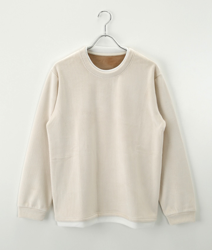 ・カットコーデュロイ素材を使用したカットソー。裏ベロア素材で暖か。