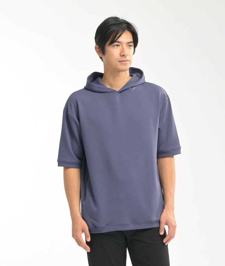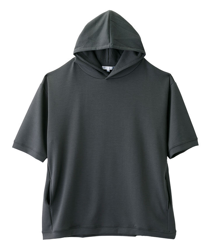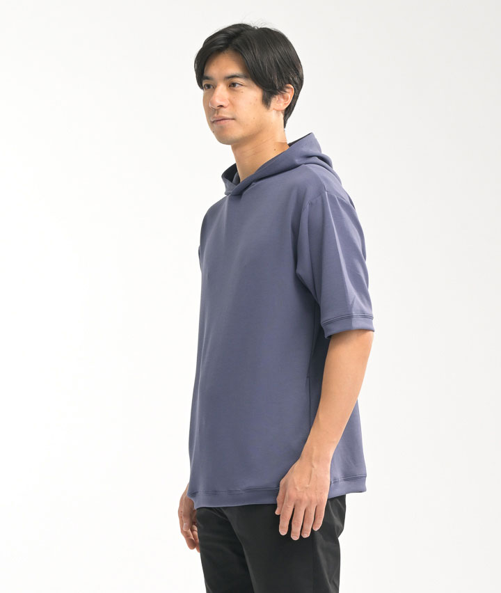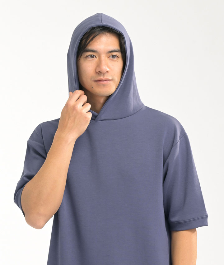 【シルキーエアーライト】(接触冷感・速乾・UVカット・ソフトタッチ)五分袖プルパーカー