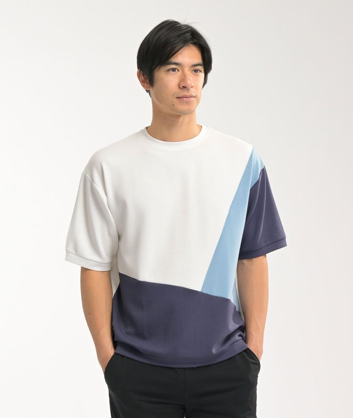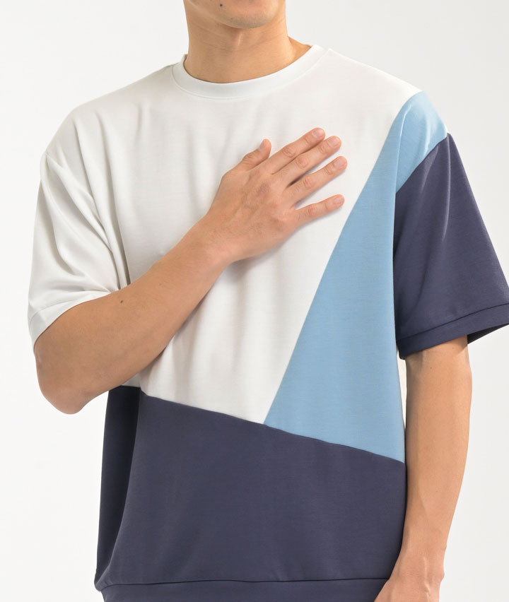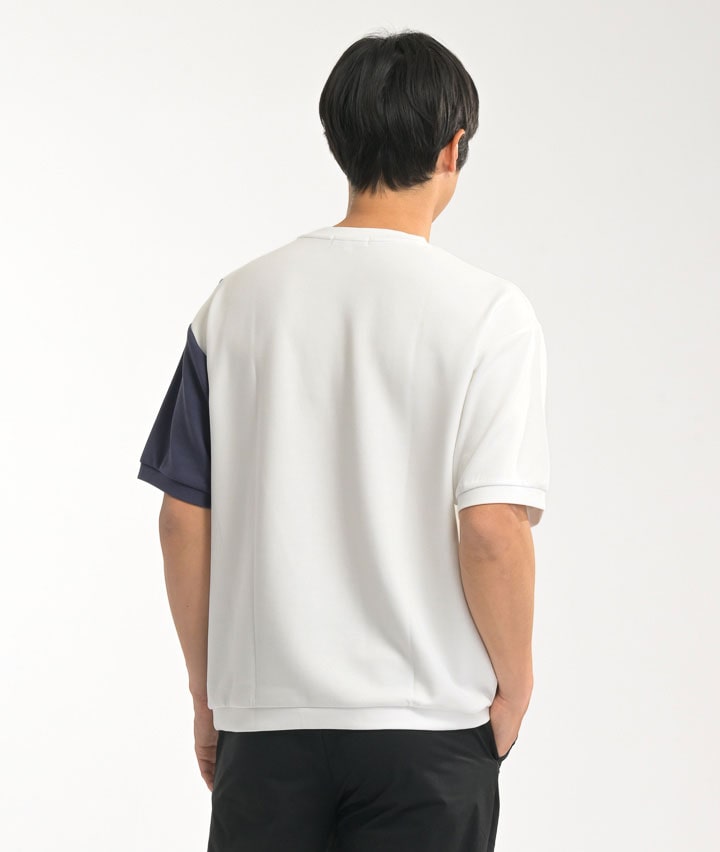 【シルキーエアーライト】(接触冷感・速乾・UVカット・ソフトタッチ)五分袖切替プルオーバー