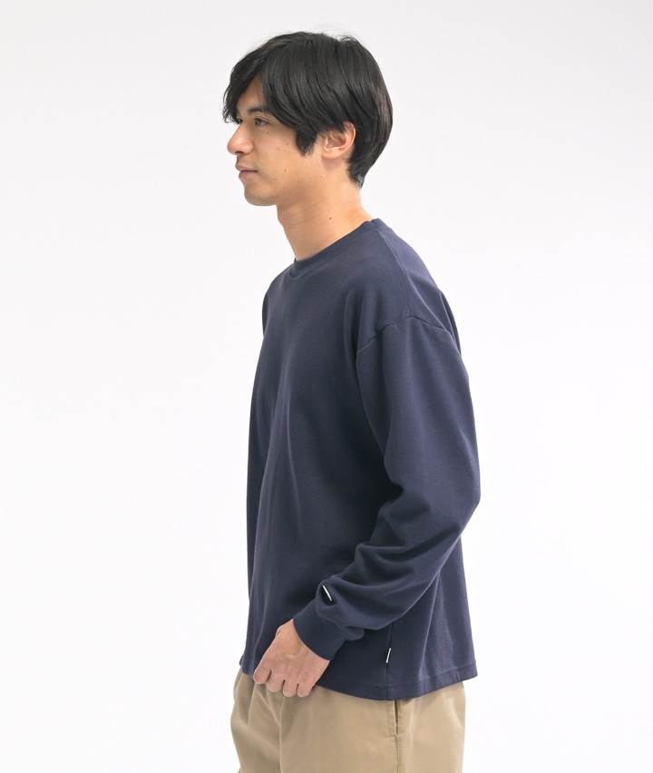 ・濃色の場合は、濡れた状態や強いまさつにより合成皮革や他のものに色移りする恐れがありますので、お取り扱いには十分ご注意ください。・プリントのある製品は、プリント部分が合成皮革のソファーやバックに大変移り易い性質がございます。お取り扱いには十分ご注意ください。・生成り、淡色製品はには蛍光増白剤が入っていない洗剤をご使用ください。・色物の場合は洗濯時に多少色落ちすることがありますので、他の洗濯物との混入はお避け下さい。・リブ部分、プリント部分がある製品は、その部分へのアイロンのご使用はお避け下さい。・洗濯後、多少の縮みがあります。・素材の特性上、斜行(ねじれ)が生じることがあります。