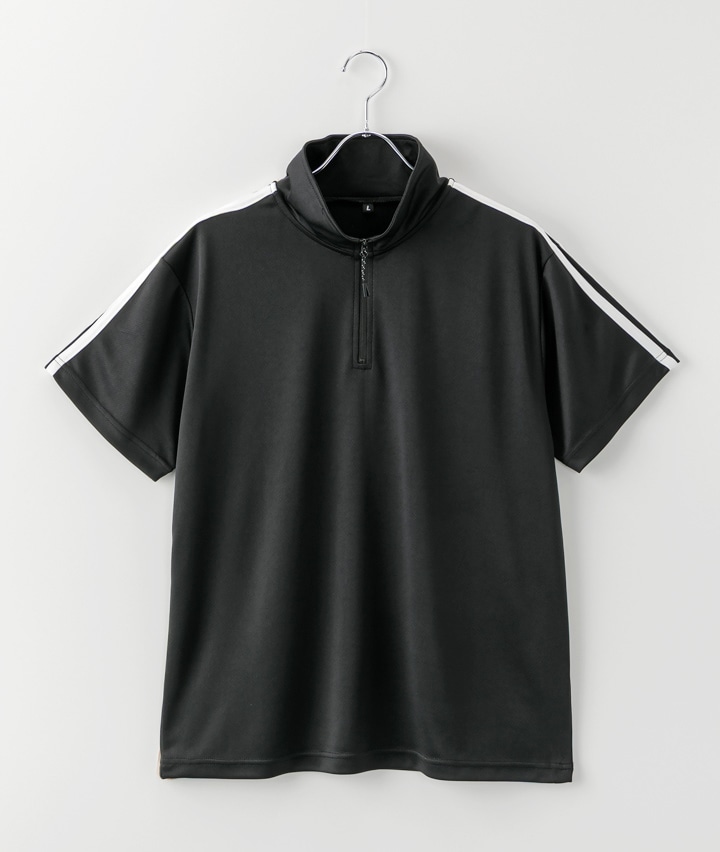 ・メッシュ素材のDRYなタッチのハーフジップTシャツです。