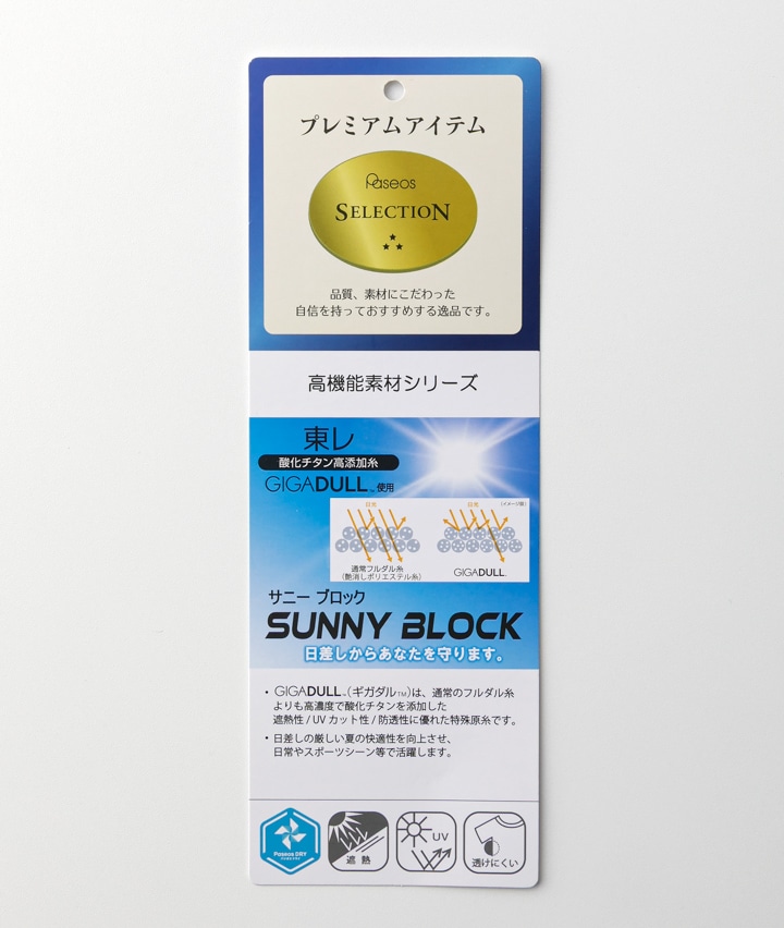 ・酸化チタンを添加した糸を使用することにより、遮熱性と防透性を持ち、日差しからあなたを守ります。東レの酸化チタン高添加糸【GIGADULL】使用。