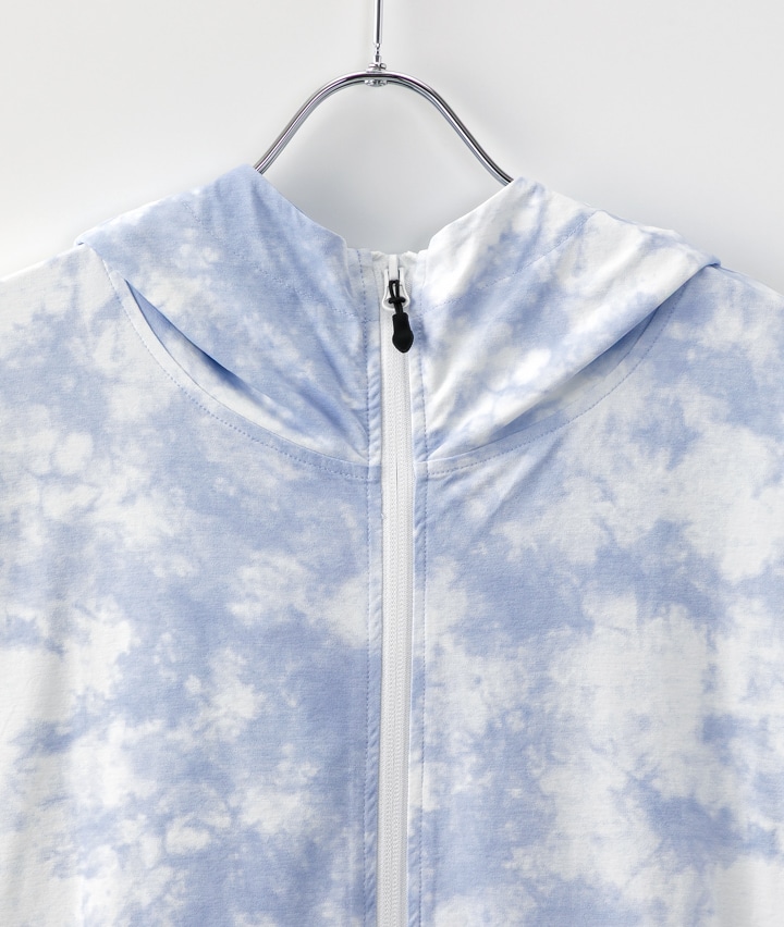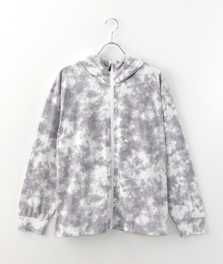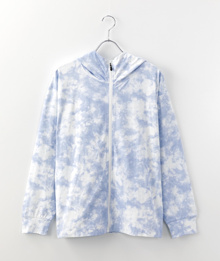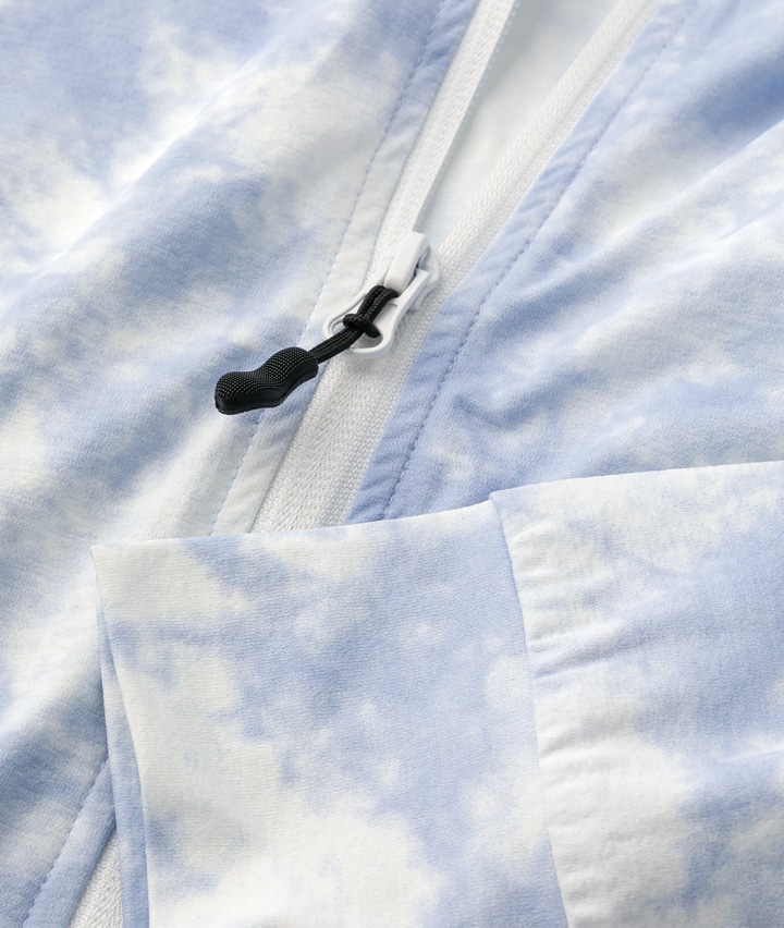 ・軽量ストレッチのUVパーカは、天竺見えする生地でタウンユースでも使える。総柄2色と無地3色展開。UVカット機能付き・軽量ストレッチ。