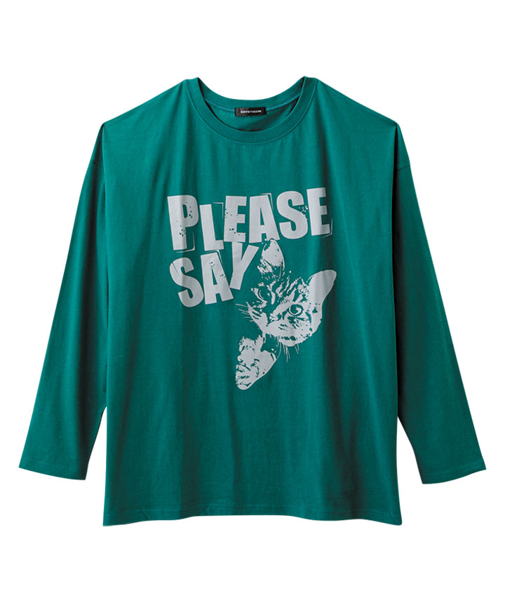 ・綿100%のしっかりした素材のゆったりサイズの猫プリント長袖Tシャツです。