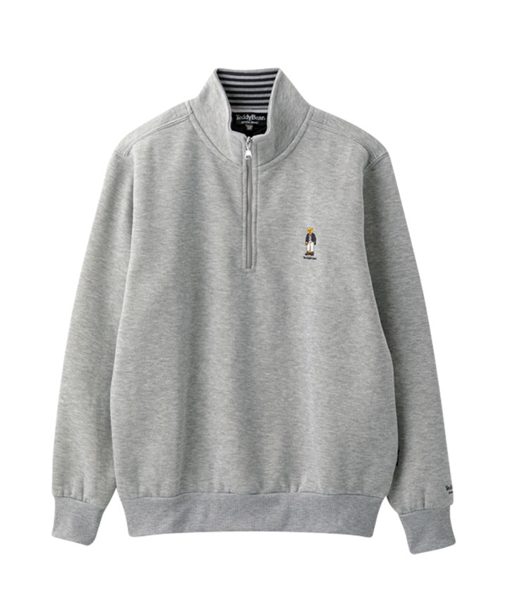 ・テディーベアーのワンポイント刺繍を施した裏起毛ハーフジップトレーナー。 ベーシックな3色展開でコーディネートしやすいアイテムです、