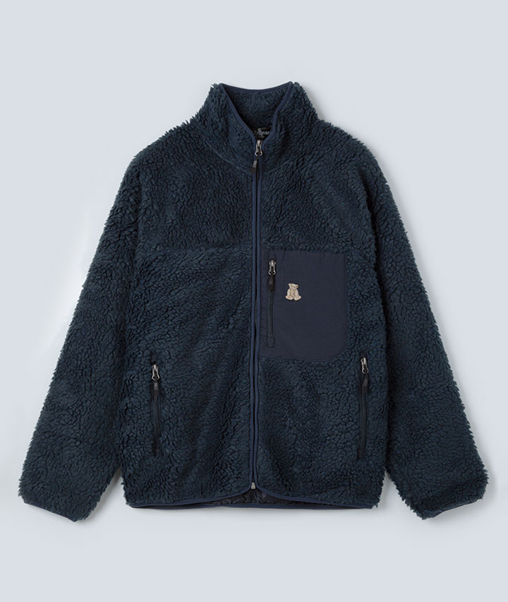・あったかシープボアで裏地付きのあうたーを提案します。 胸ポケットにテディベアーのワンポイント刺繍を程しています。 男女兼用でも着用できますのでジーンズにもマッチします。これからの季節には最適なアイテムです。