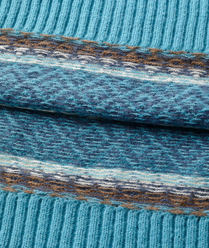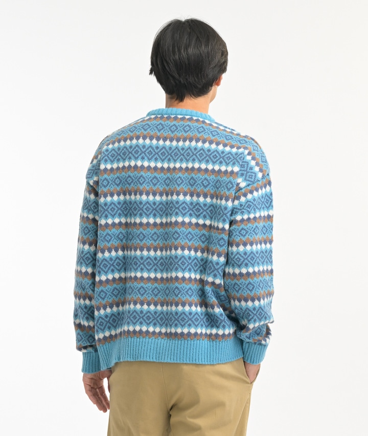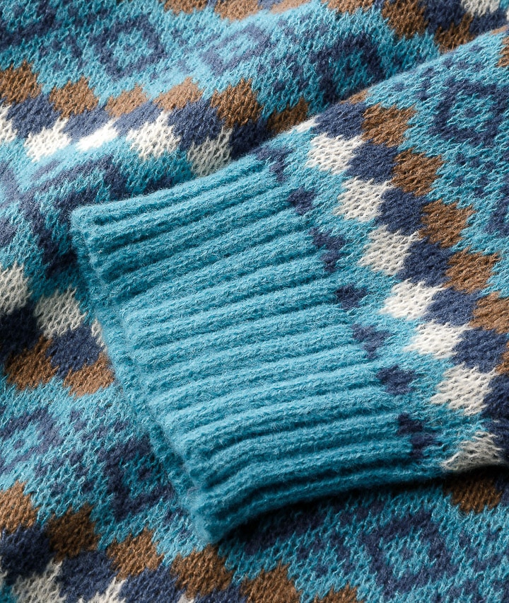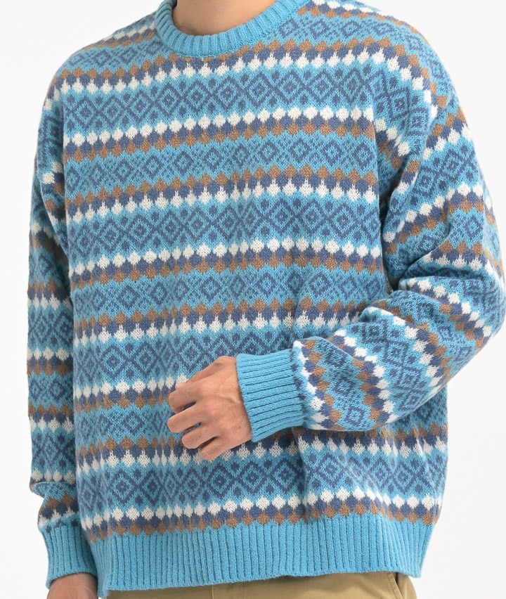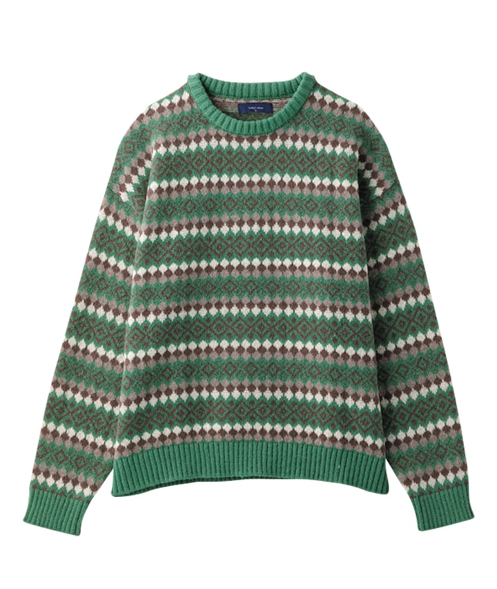 ・幾何学柄がとてもかわいい柄で、古着感覚でオシャレに着こなせるクルーセーターになります。