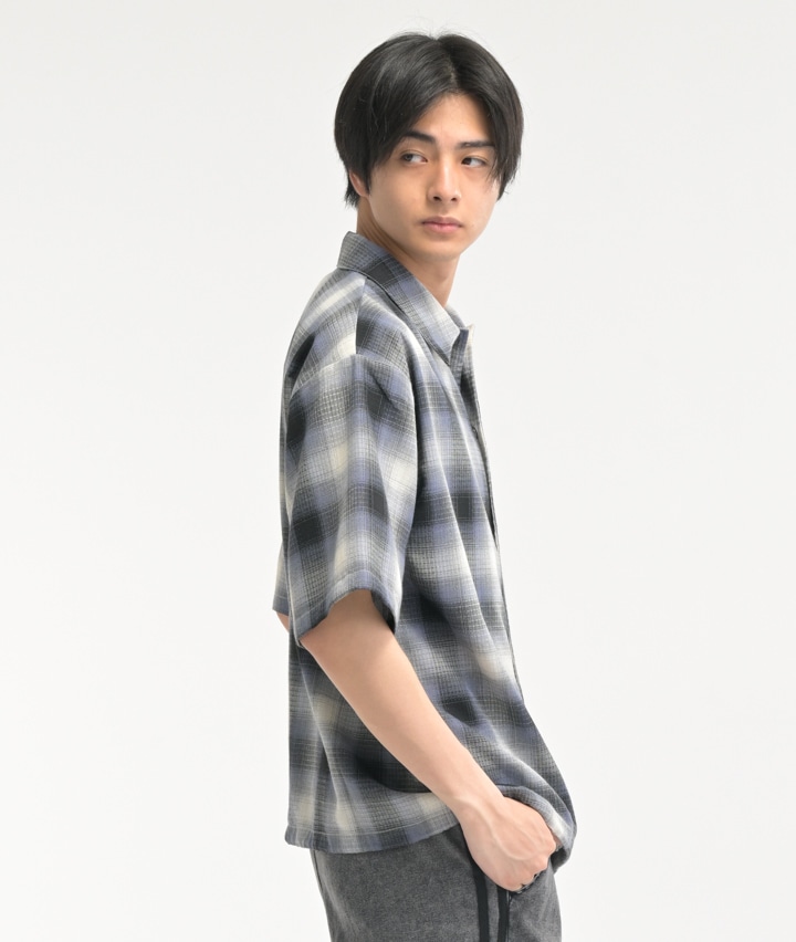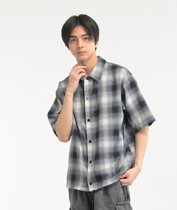 【04/01(水)10:00販売開始】オンブレチェック半袖コーチ風シャツ