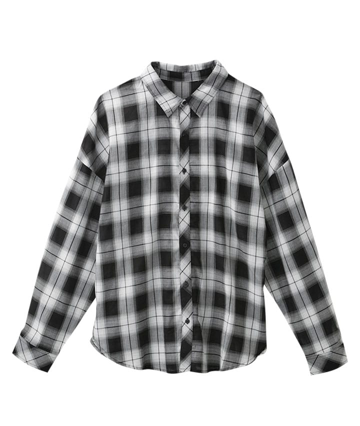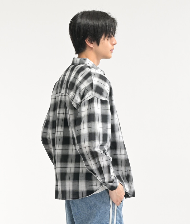 長袖オンブレチェックシャツ
