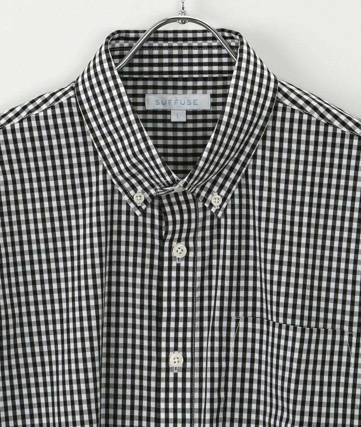 形態安定ギンガムチェックシャツ