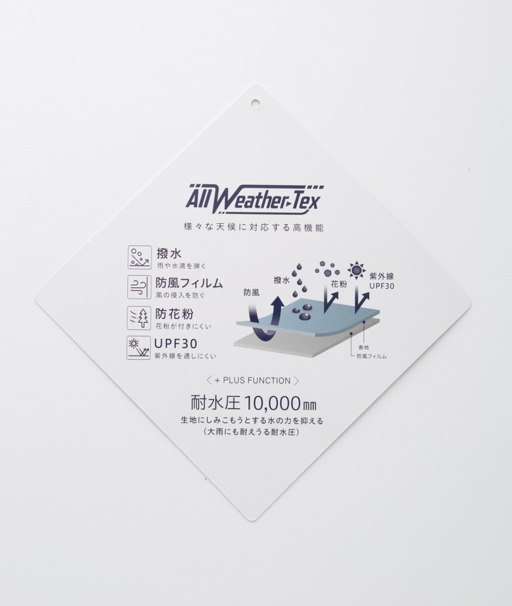 ・表地 ポリエステル100%(裏側にポリウレタン樹脂コーティング加工) 裏地 ナイロン100% 中わた ポリエステル100% リブ部分 ポリエステル97% ポリウレタン3% 表地は高機能生地オールウェザーを使用。中わたは、sorona中綿を使用。環境に優しいリサイクル綿で、線自体に弾性があり、洗濯後の変形が少なく、肌に刺激を減らして快適な着用感を誇ります。