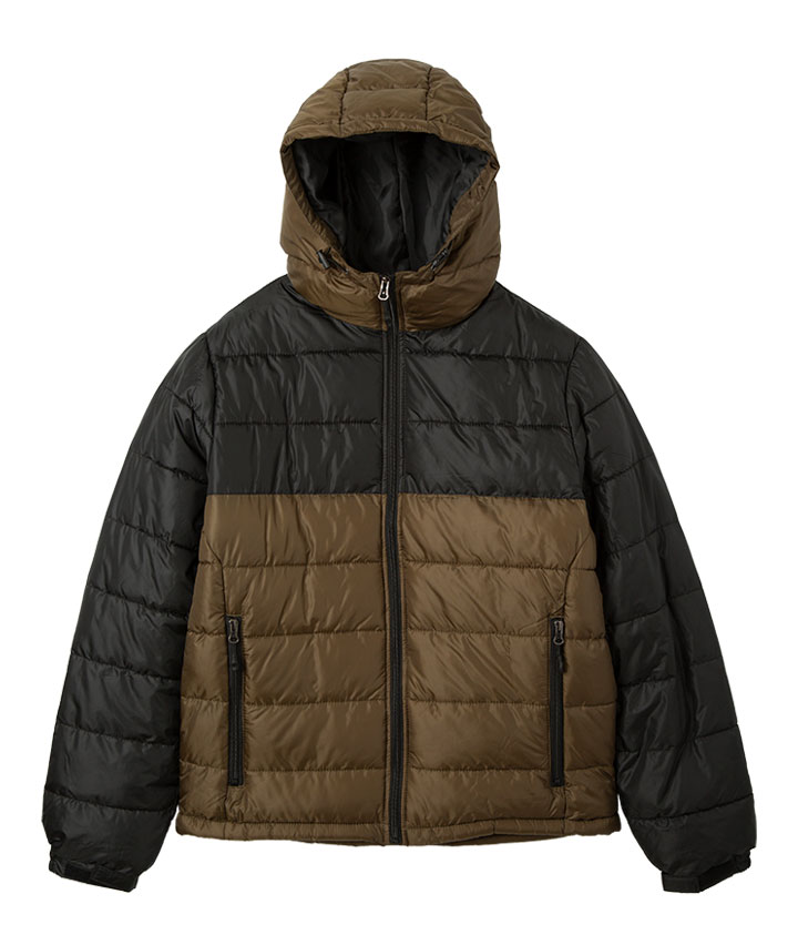 ・高密度のミニリップ生地は、薄くて触り心地がソフトです。肩部分を、ブラックの切替配色でおしゃれ感UP!ダウンタイプ(ボール中綿)の暖かいジャケットです。