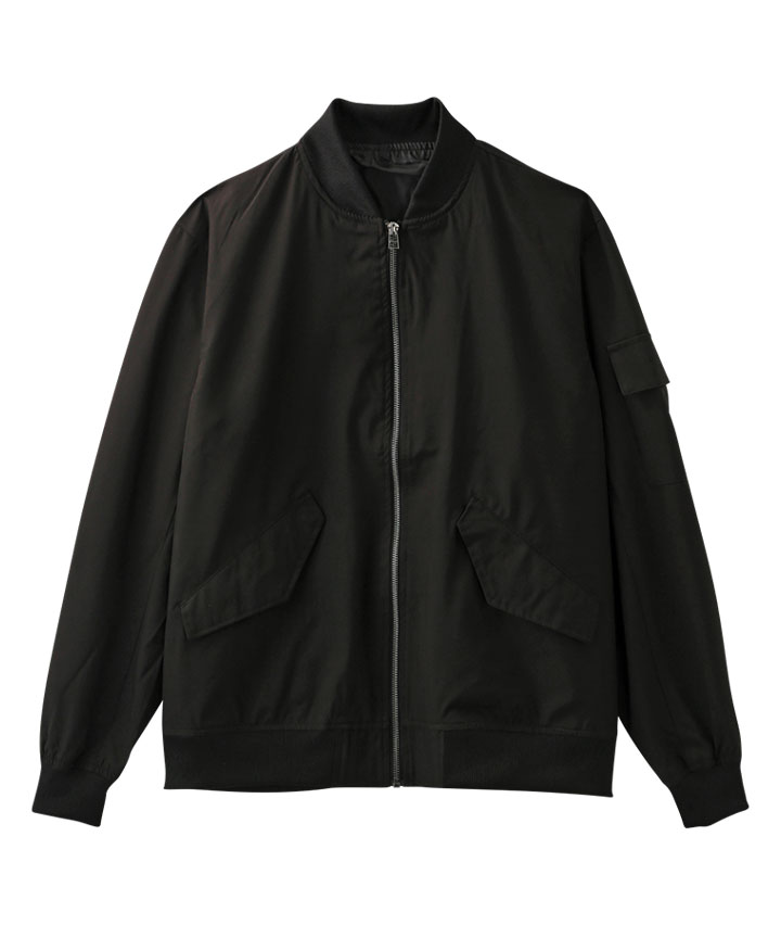 ・ストレッチ(ポリウレタン)で動きやすく、カジュアルに着られる!MA-1風の軽量ジャンパーです。裏地には、光沢感やハリ感のあるタフタ生地を使用。水を弾きやすい加工が施されています。