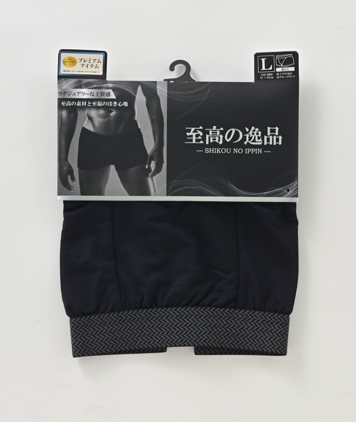 ・※前とじ商品です。~至高の素材と至福のはき心地~品質・素材にこだわって開発したpaseosのプレミアムアイテム【至高の逸品】シリーズ。股下部分に消臭テープを使用。ラグジュアリーで上質感ある梨地仕様のボクサーブリーフです。