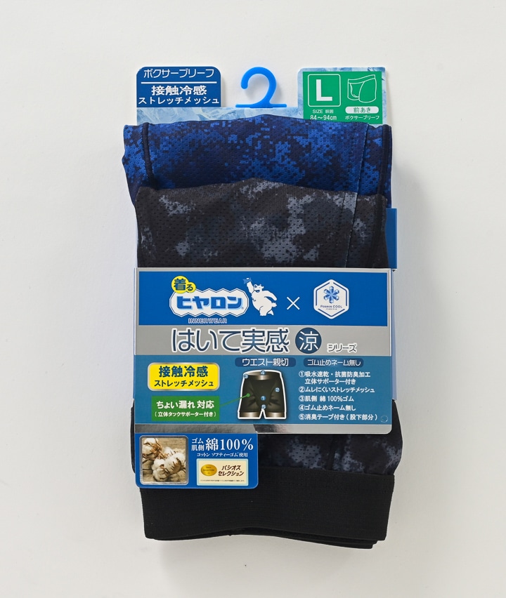 【着るヒヤロン×Paseos COOL】【はいて実感・涼シリーズ】(接触冷感)(ストレッチメッシュ)(ちょい漏れ対応)(前開き)(2枚組)ボクサーブリーフ