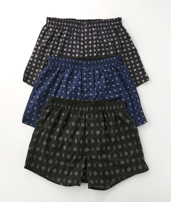 (小紋柄)(綿100%)(前開き)(3枚組)トランクス