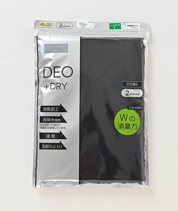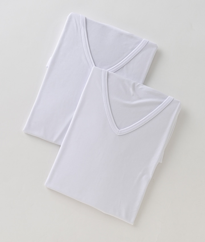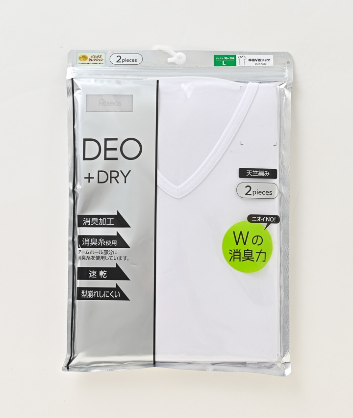 【DEO+DRY Wの消臭力】(消臭加工)(アームホール部分消臭糸使用)(速乾)(型崩れしにくい)(天竺編み)(2枚組)半袖V首シャツ