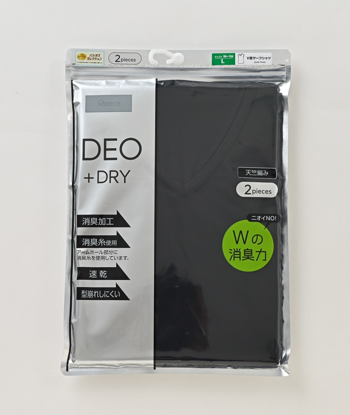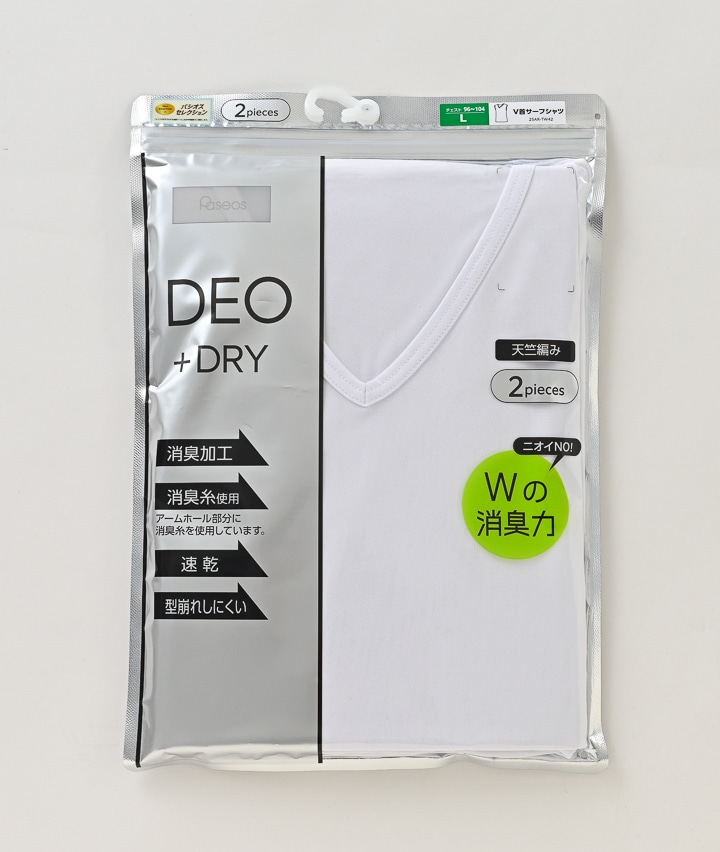 【DEO+DRY Wの消臭力】(消臭加工)(アームホール部分消臭糸使用)(速乾)(型崩れしにくい)(天竺編み)(2枚組)V首サーフシャツ