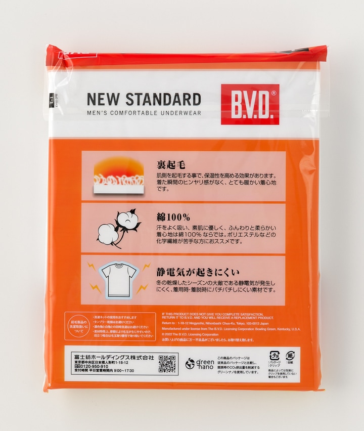 【BVD】【NEW STANDARD】(裏起毛)(綿100%)(保温)(フライス編み)(2枚組)半袖丸首Tシャツ
