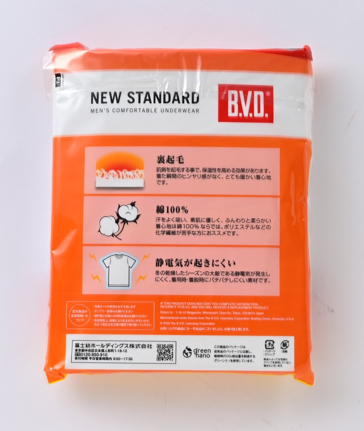 【BVD】【NEW STANDARD】(裏起毛)(綿100%)(保温)(フライス編み)(2枚組)長袖丸首Tシャツ