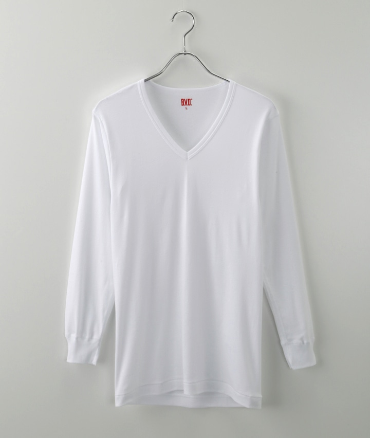 【BVD】【NEW STANDARD】(裏起毛)(綿100%)(保温)(フライス編み)(2枚組)長袖V首Tシャツ