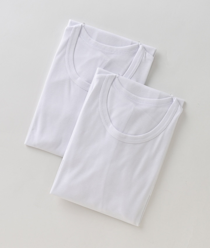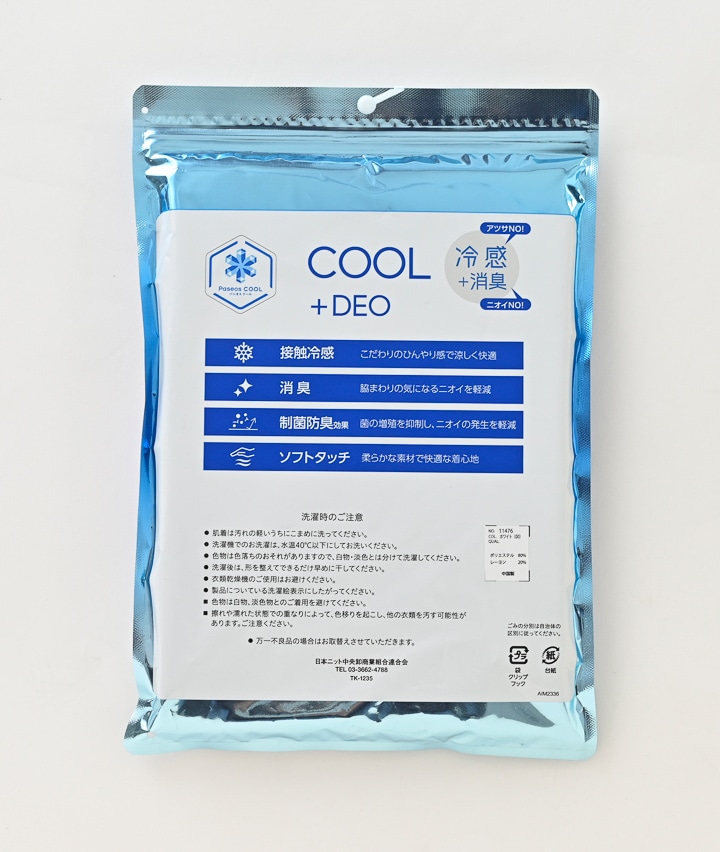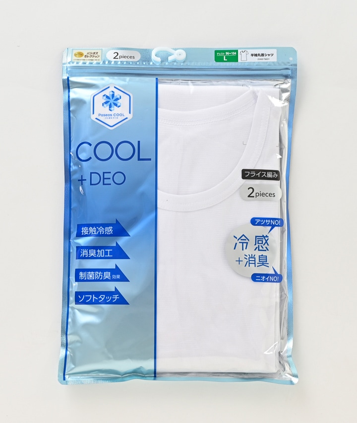 ・【Paseos COOL】の2枚組接触冷感インナー、今年は【冷感】×【消臭】で更に快適な着心地にアップデートしました!レーヨン混でやわらかな肌ざわりの2枚組肌着です。