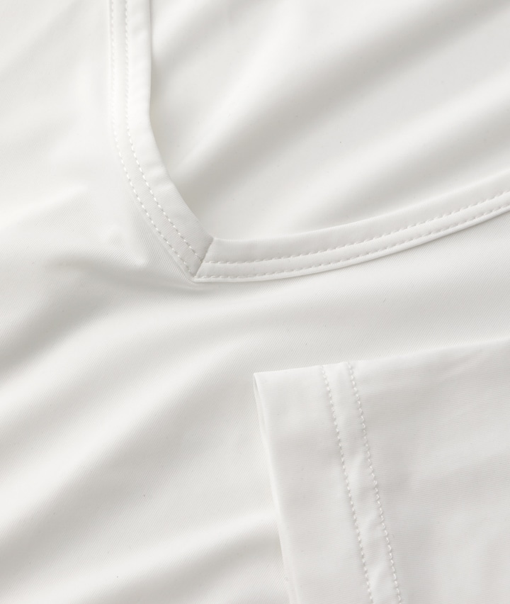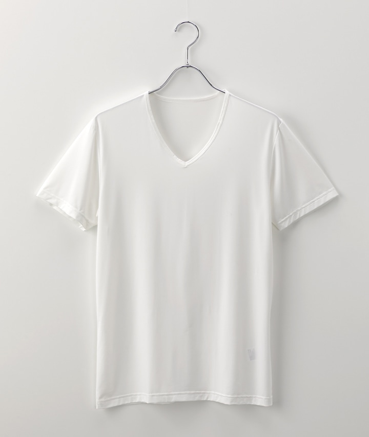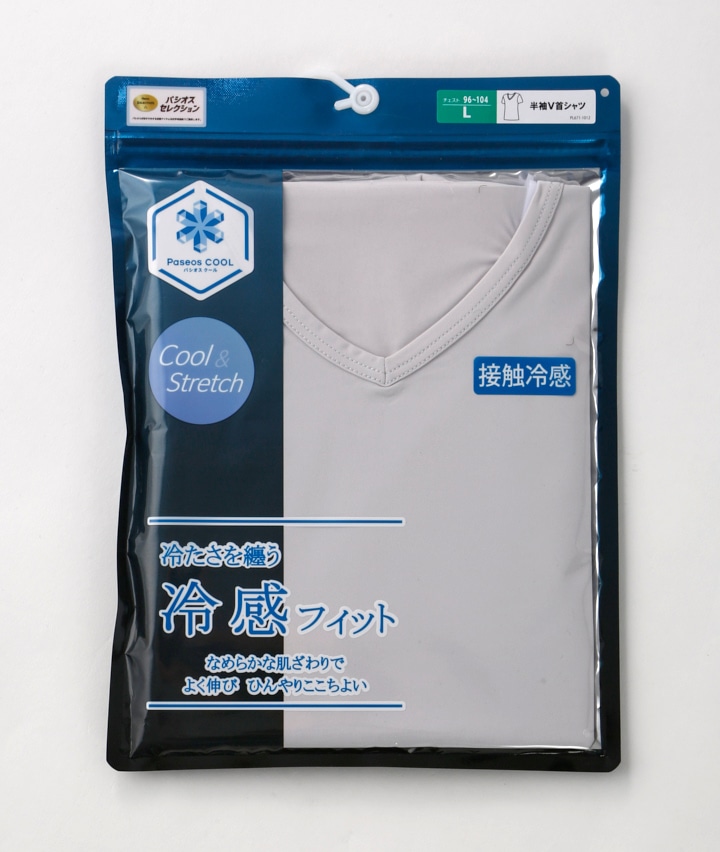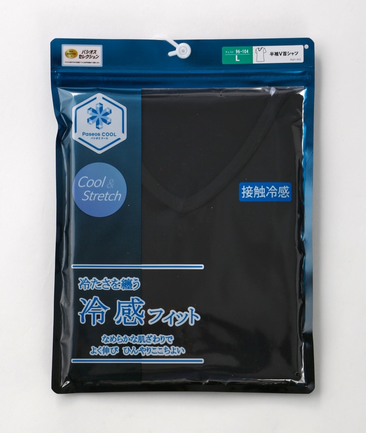 【Paseos COOL】(接触冷感)(ストレッチ)(紫外線対策)(ソフトタッチ)半袖V首シャツ