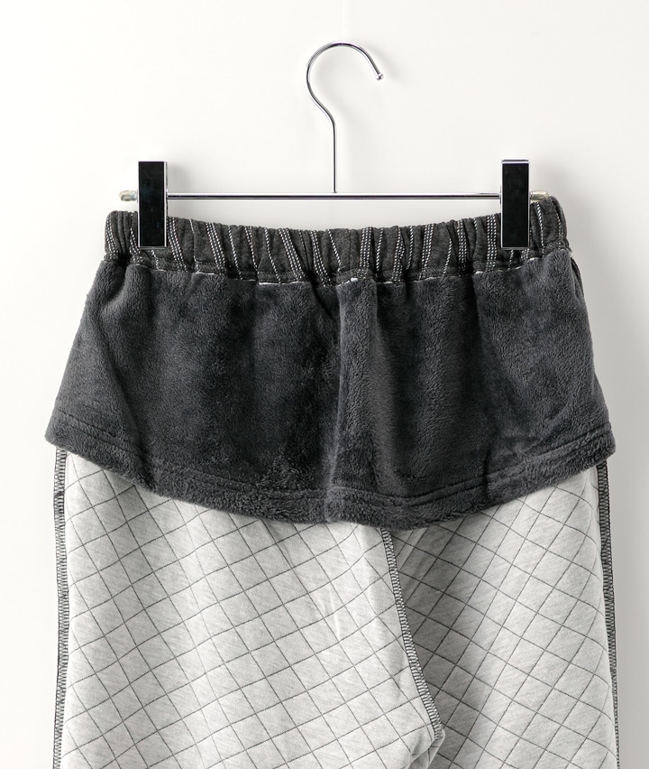 ・温活あったかシャツパジャマ。背当て、腰当て部分はふわもこ生地を使用し、袖口とパンツ裾口がゴム仕様になっている暖かパジャマです。