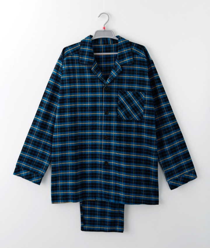 【こだわりパジャマ】(綿100%)アクセントチェック起毛シャツパジャマ