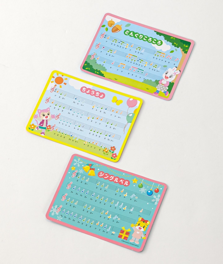 ・下段ではピアノのようにひいて、上段ではシロホンをたたける2通りの遊び方ができるアイテムです! 6曲分の楽譜シートとマレット付き。
