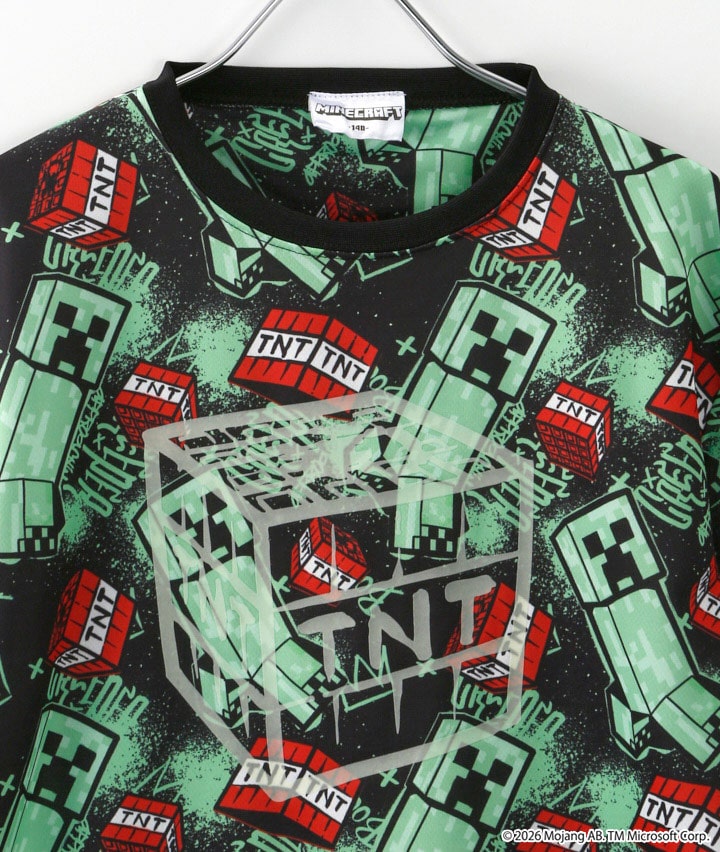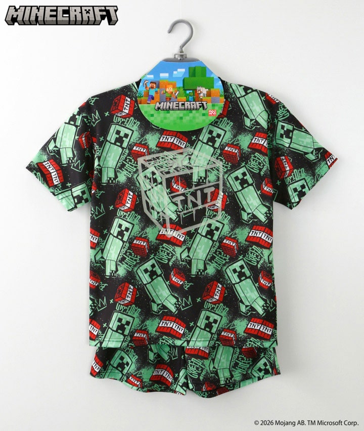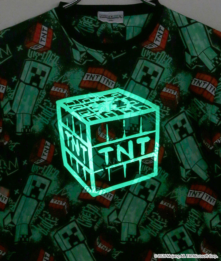 ・大人気ゲーム「マインクラフト」のルームウェアです。胸元に蓄光プリントのデザインです。
