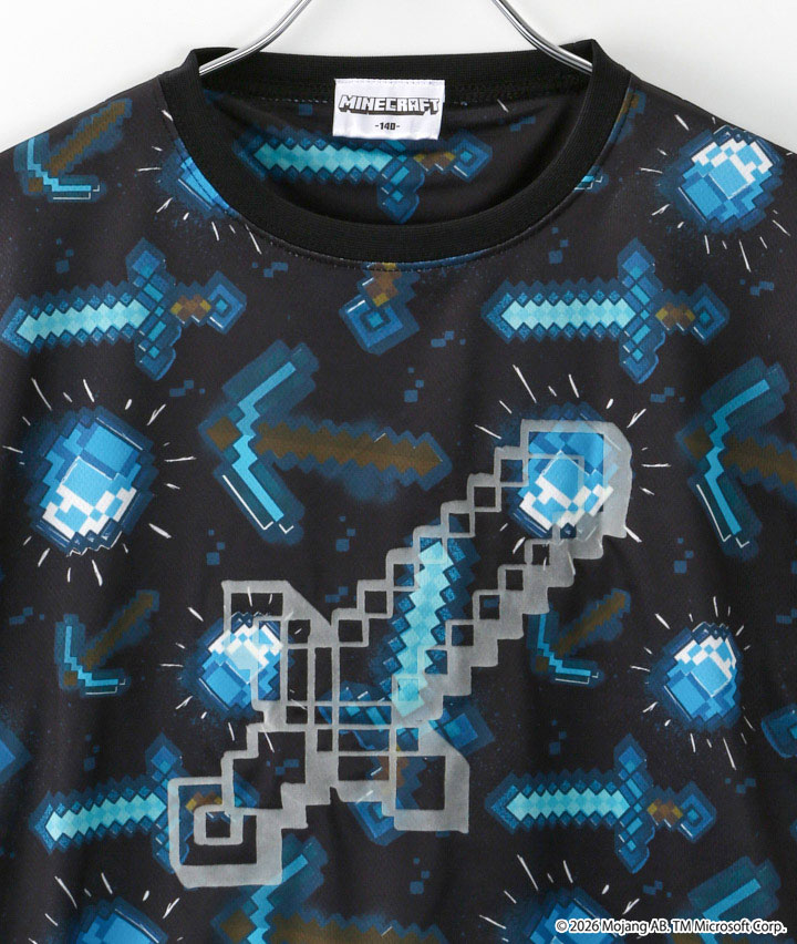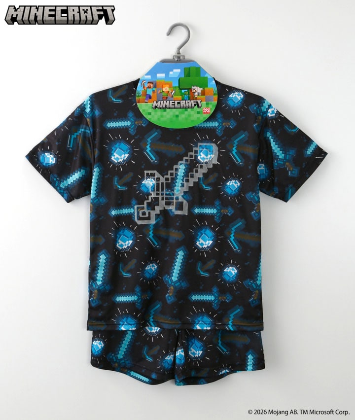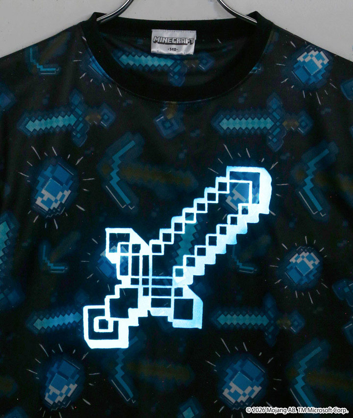 ・大人気ゲーム「マインクラフト」のルームウェアです。胸元に蓄光プリントのデザインです。