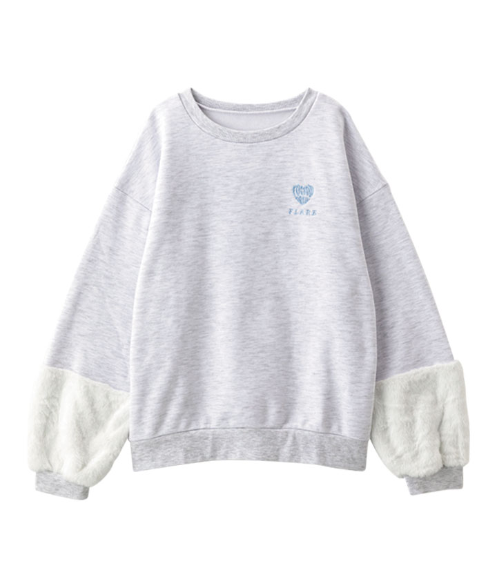 ・ファー切替の袖がかわいいプルオーバーです。裏起毛素材で暖かいです。