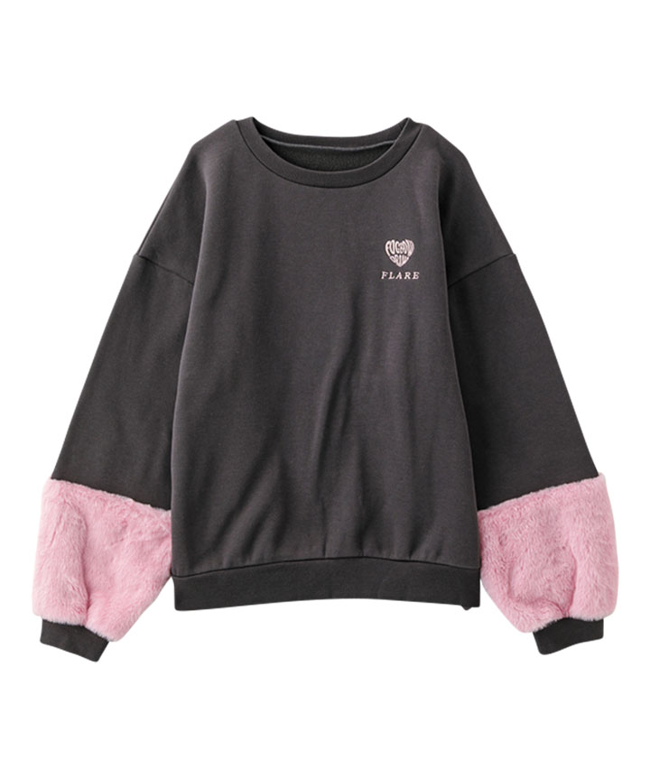 ・ファー切替の袖がかわいいプルオーバーです。裏起毛素材で暖かいです。