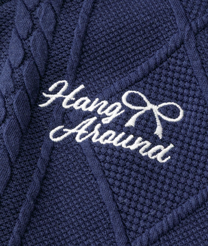 ・ケーブル柄トップスのレイヤード風デザインがかわいいプルパーカです。
