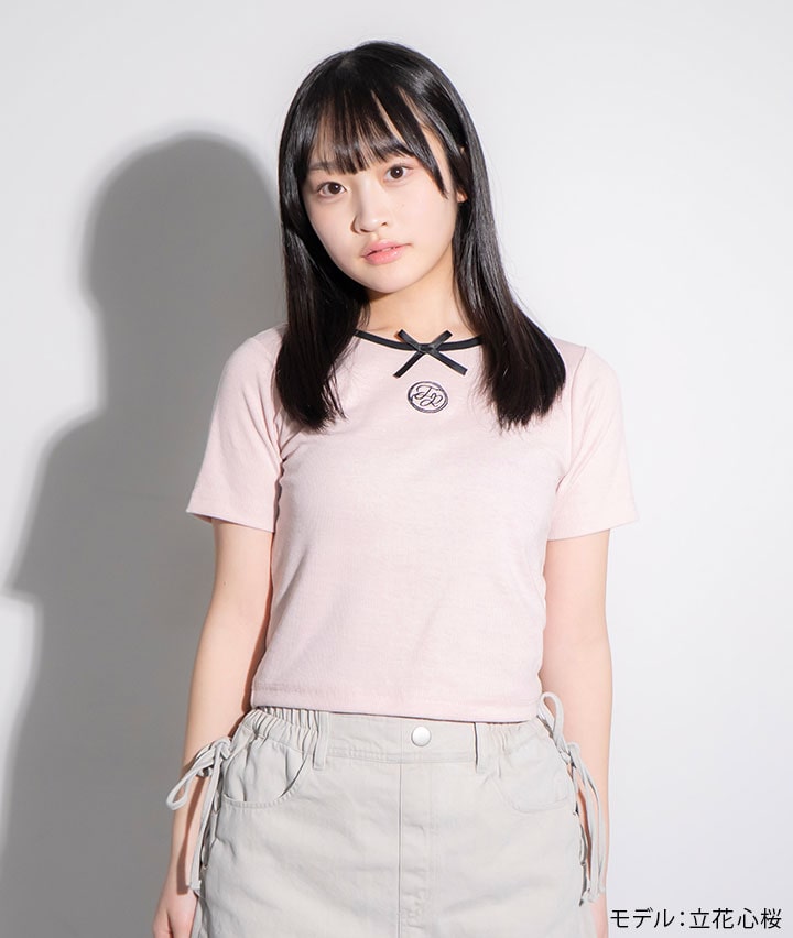 ・胸元のリボンと小さいロゴ刺しゅうがかわいいプルオーバーです。