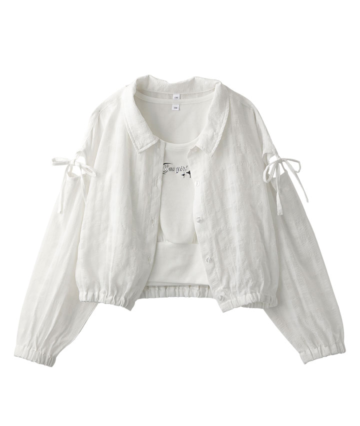 ・透け感がかわいいシャツとタンクトップのセットアイテムです。