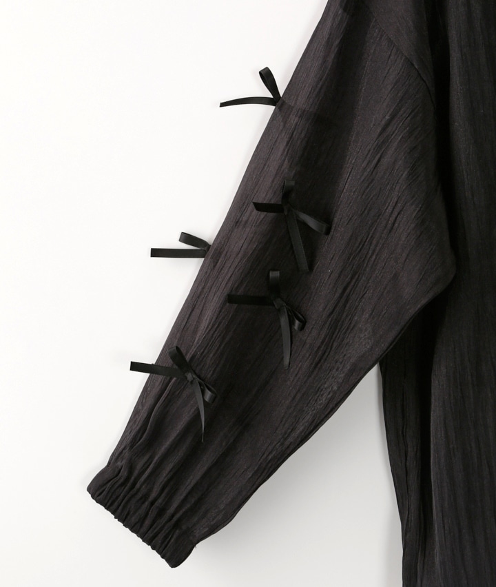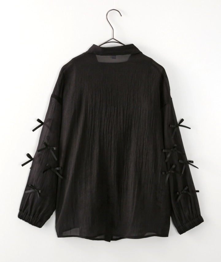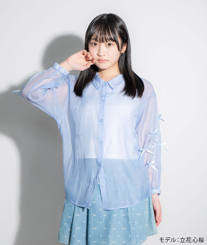 ・袖のリボンがポイントのシアーシャツとインナーのセットアイテムです。