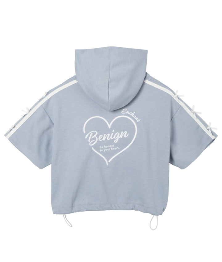 ・後身の厚盛ししゅうロゴがかわいいショート丈プルパーカーです。