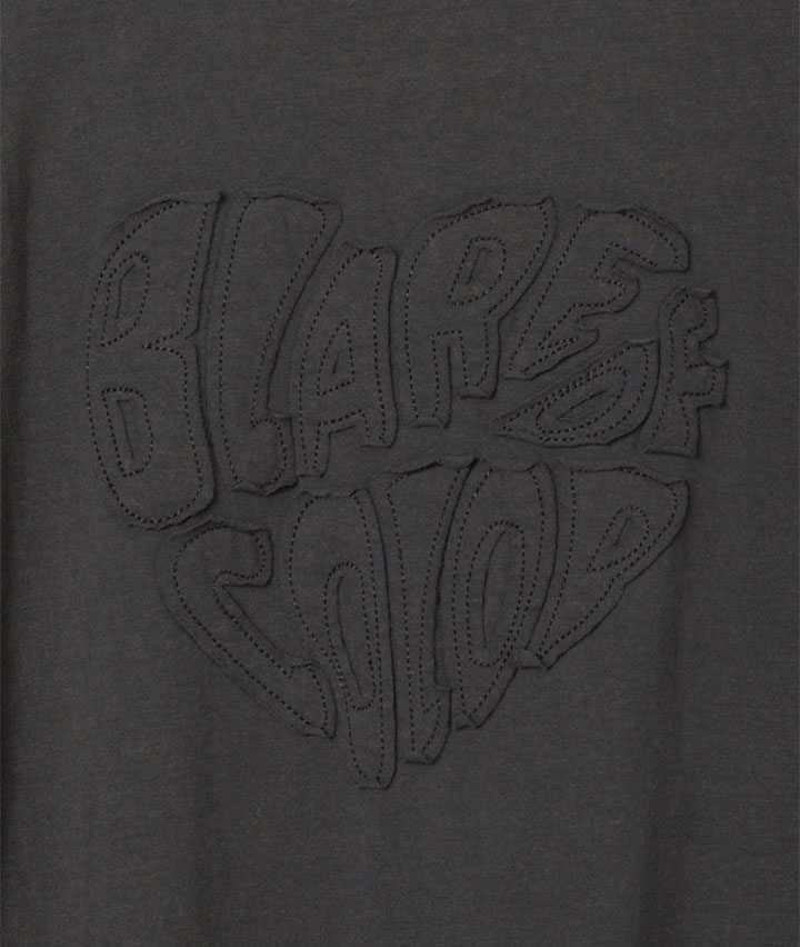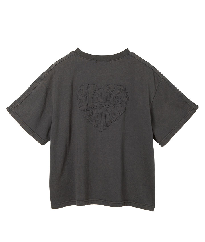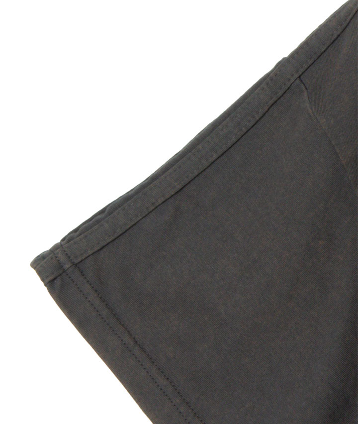 ・ヴィンテージ風の加工がかっこいいTシャツです。後身の共地を叩きつけたロゴもポイント。
