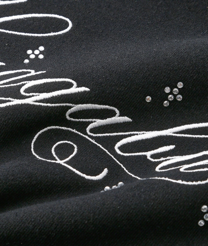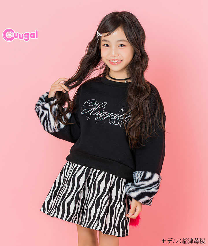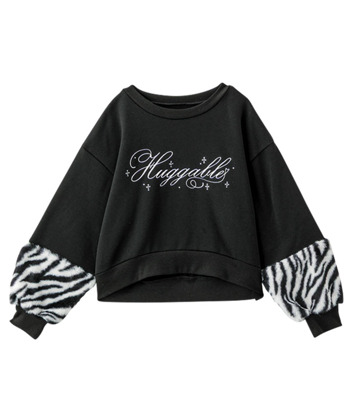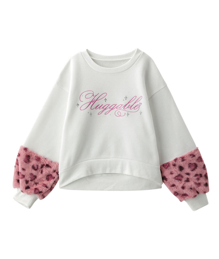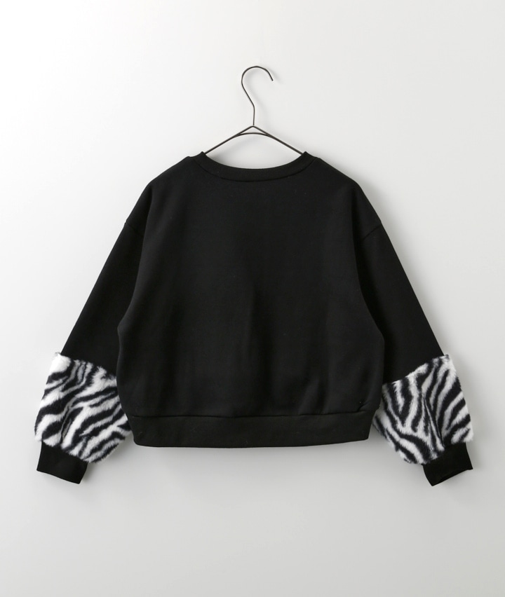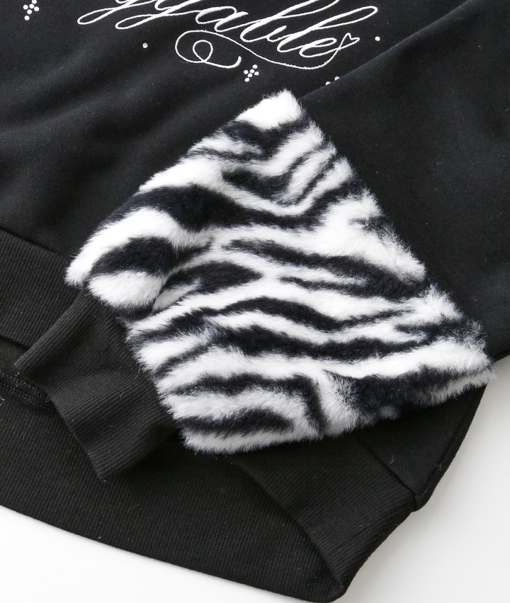 ・袖のアニマルファーがかわいいプルオーバーです。前身のししゅうロゴにキラキラのラインストーンかかわいい!裏起毛素材で暖かいです。